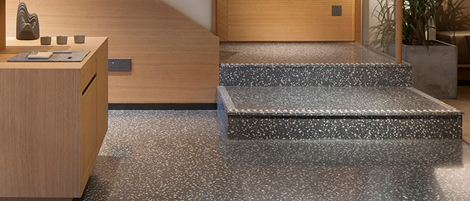 此項目墻面及隔區(qū)裝置采用了大量的異形和弧形整體設計,這對水磨石現(xiàn)場施工是一個極高技術難度的考驗,我司通過專業(yè)的產(chǎn)品材料方案及合理的施工工藝方案,成功解決此技術難題,項目完成之后室內(nèi)外空間呈現(xiàn)整體的原始設計質感,匠心品質把控,色調(diào)清新淡雅,營造出客戶需求的極致體驗氛圍,并提供專業(yè)后期保養(yǎng)維護方案,獲得客戶高度贊譽。